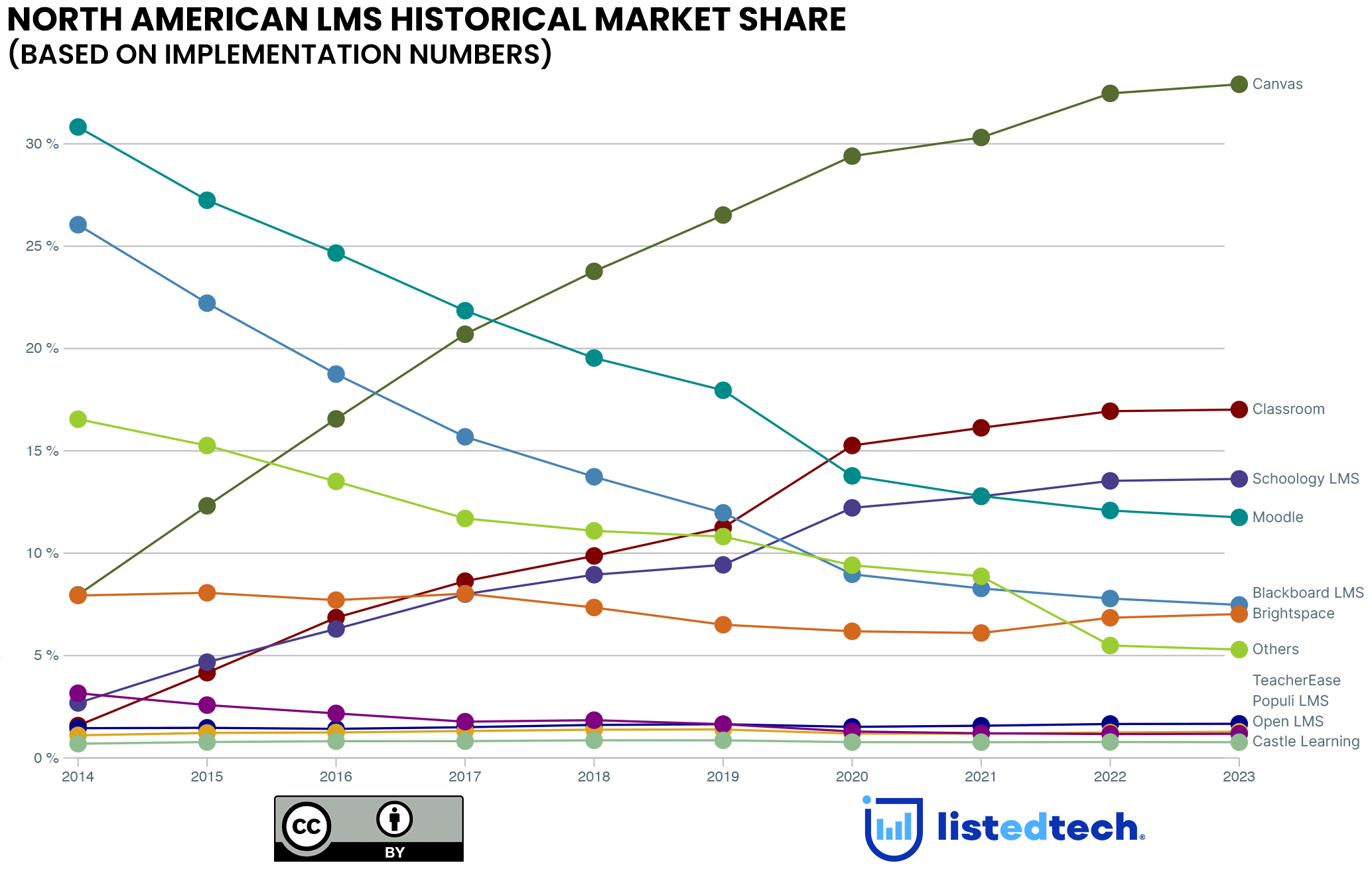 This post is in its third iteration (2015; 2020, 2023). In 2020, we focused our graphs and analysis on historical implementation data. For this update, we look at the most current market shares in Canada’s LMS market. We also kept the historical market shares and new implementations as references for data fanatics. Canada has a ... Learning Management Systems in Canada Read More