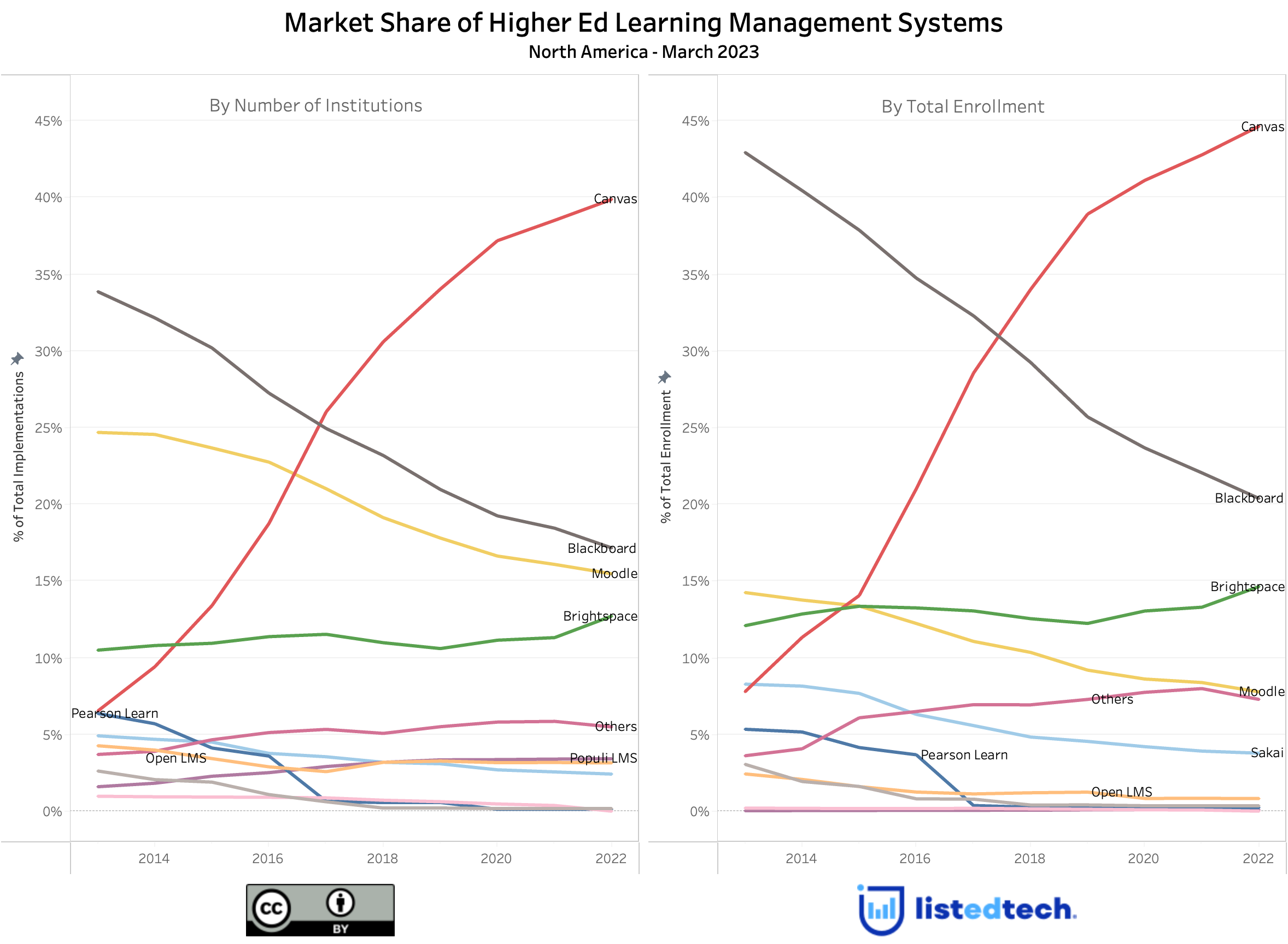 We usually present the market share for the product categories using the number of institutions. This is currently our default view. However, this way of presenting does not tell everything, and stakeholders should have access to other metrics when making product selections. This post compares market share by the number of institutions and enrollment to ... Dual View: Another Perspective on the Market Share Read More
